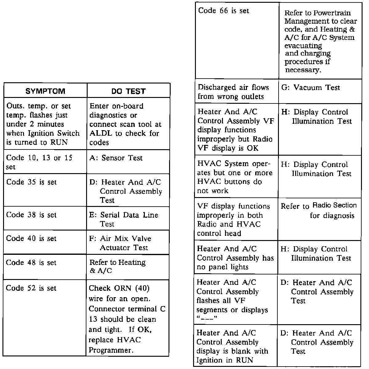 - Symptom Table