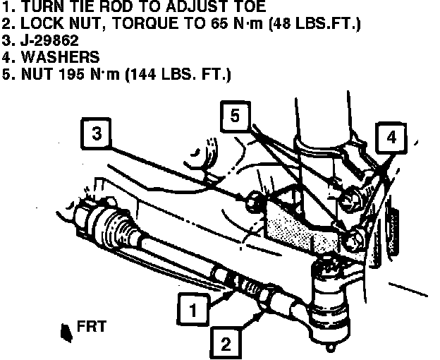 Toe adjustment is made by loosening the locknut at tie rod end and turning inner tie rod to set toe to specifications,