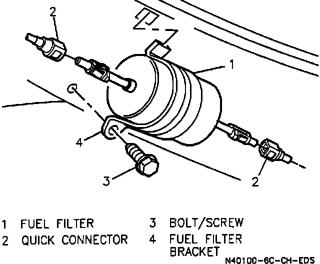 The fuel filter is located under the front of the vehicle alongside the right body rail.