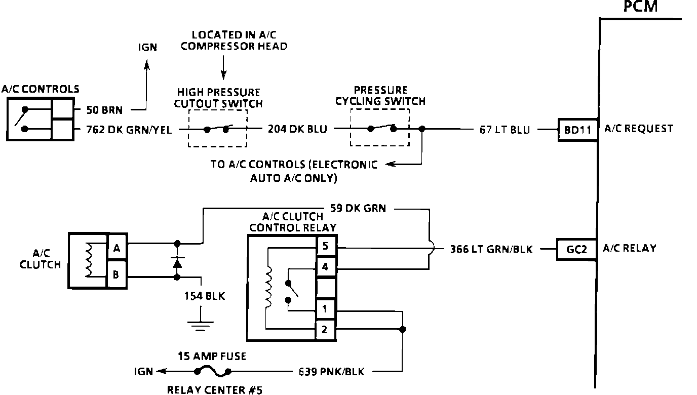 A/C System Circuit Diagram (C67 A/C W/Out Climate Control):