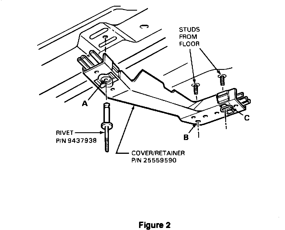 A cover/retainer may be added by ordering cover/retainer, P/N 25559590, and rivet, P/N 9437938 which can be attached to present studs at position "B" and "C" as shown.