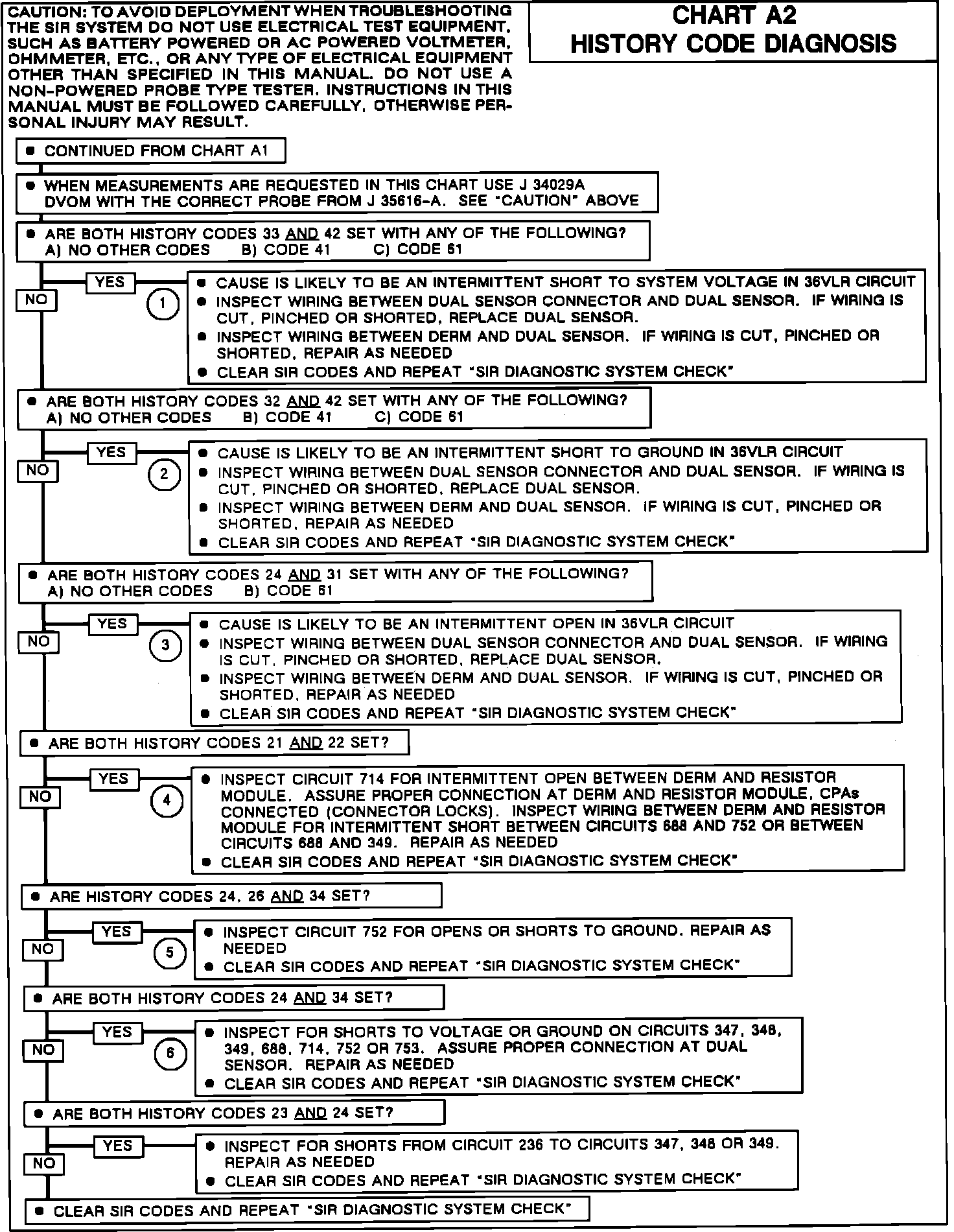 Fig. 634 Chart A2, History Code Diagnosis (Part 2 of 2). w/Single Airbag:
