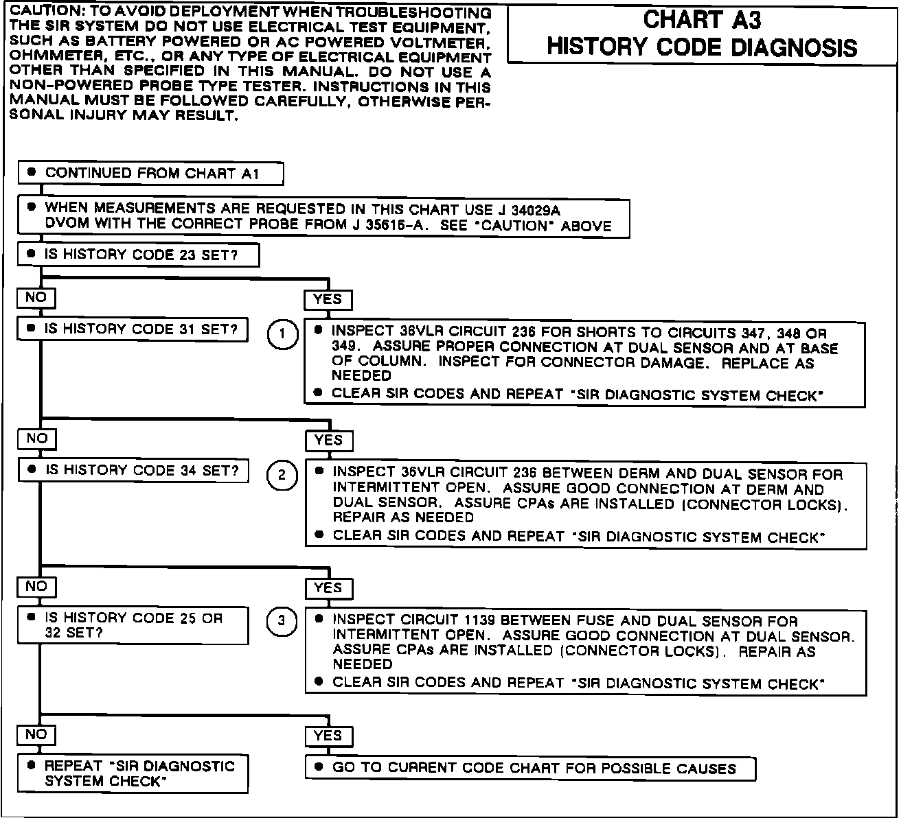 Fig. 635 Chart A3, History Code Diagnosis (Part 1 of 2). w/Single Airbag: