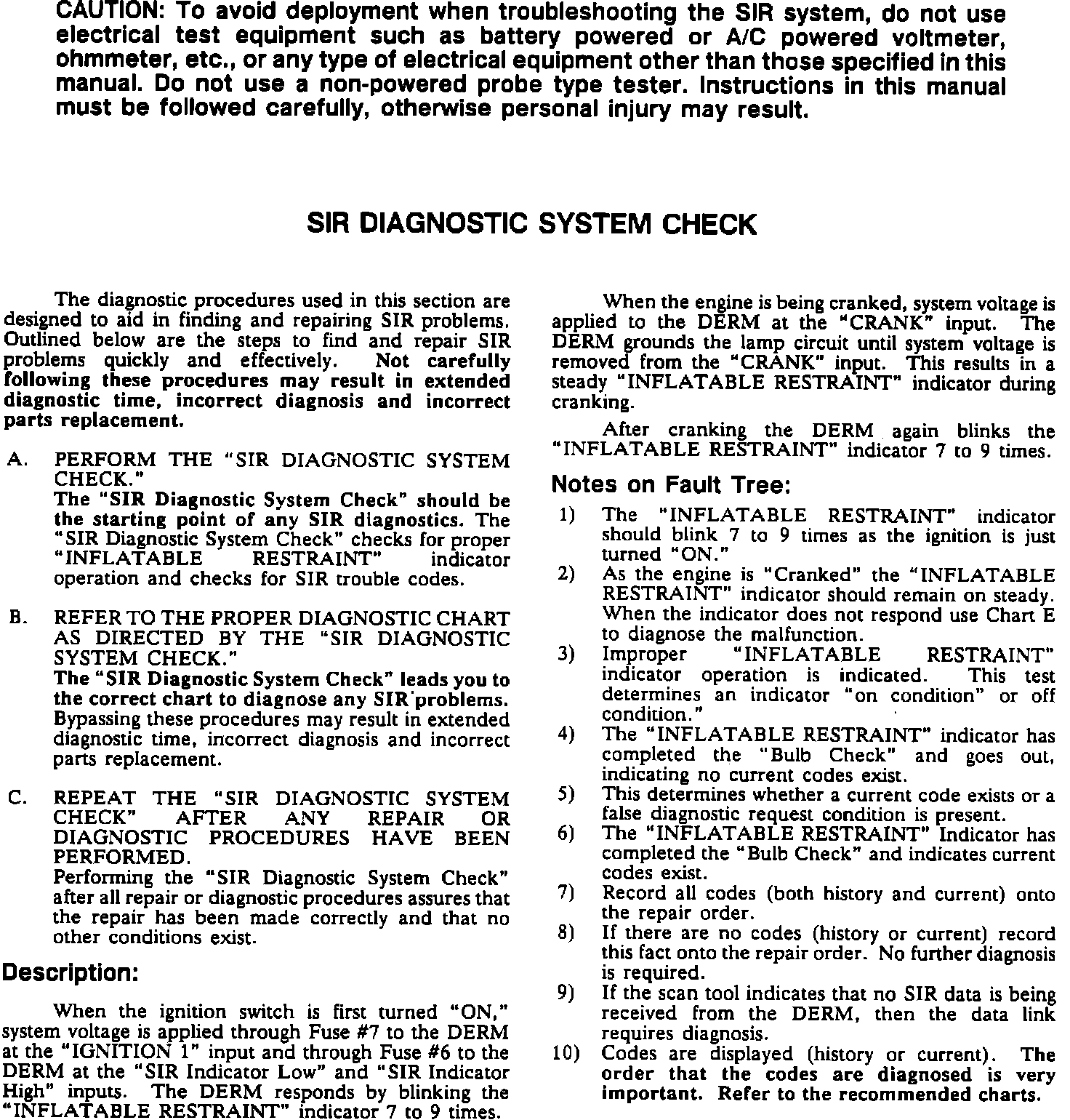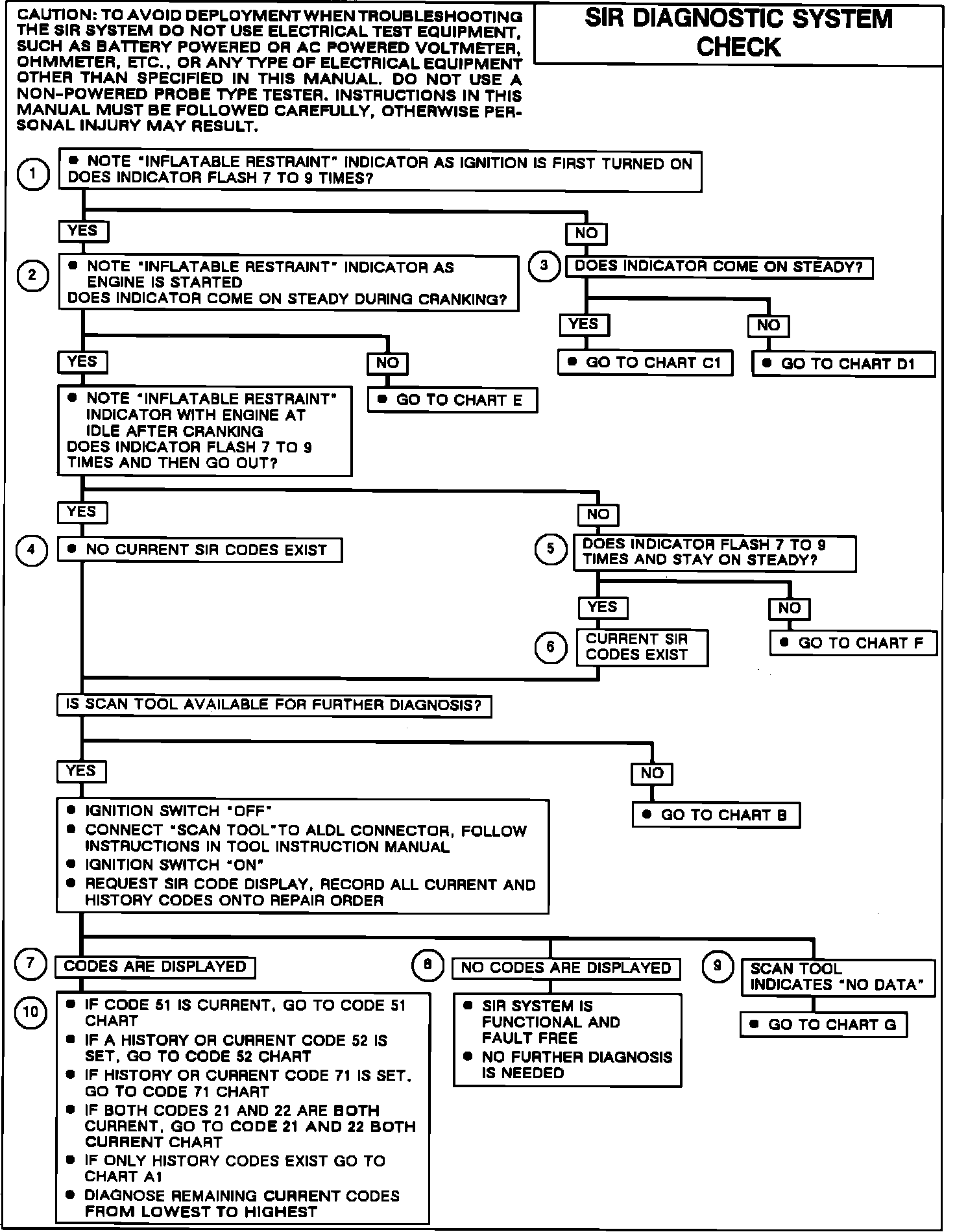 Fig. 632 SIR Diagnostic System Check (Part 1 of 2). w/Single Airbag:
