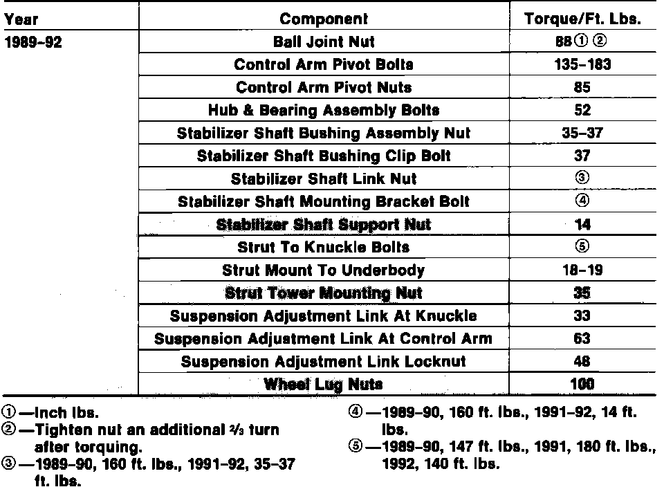 Tightening Specifications: