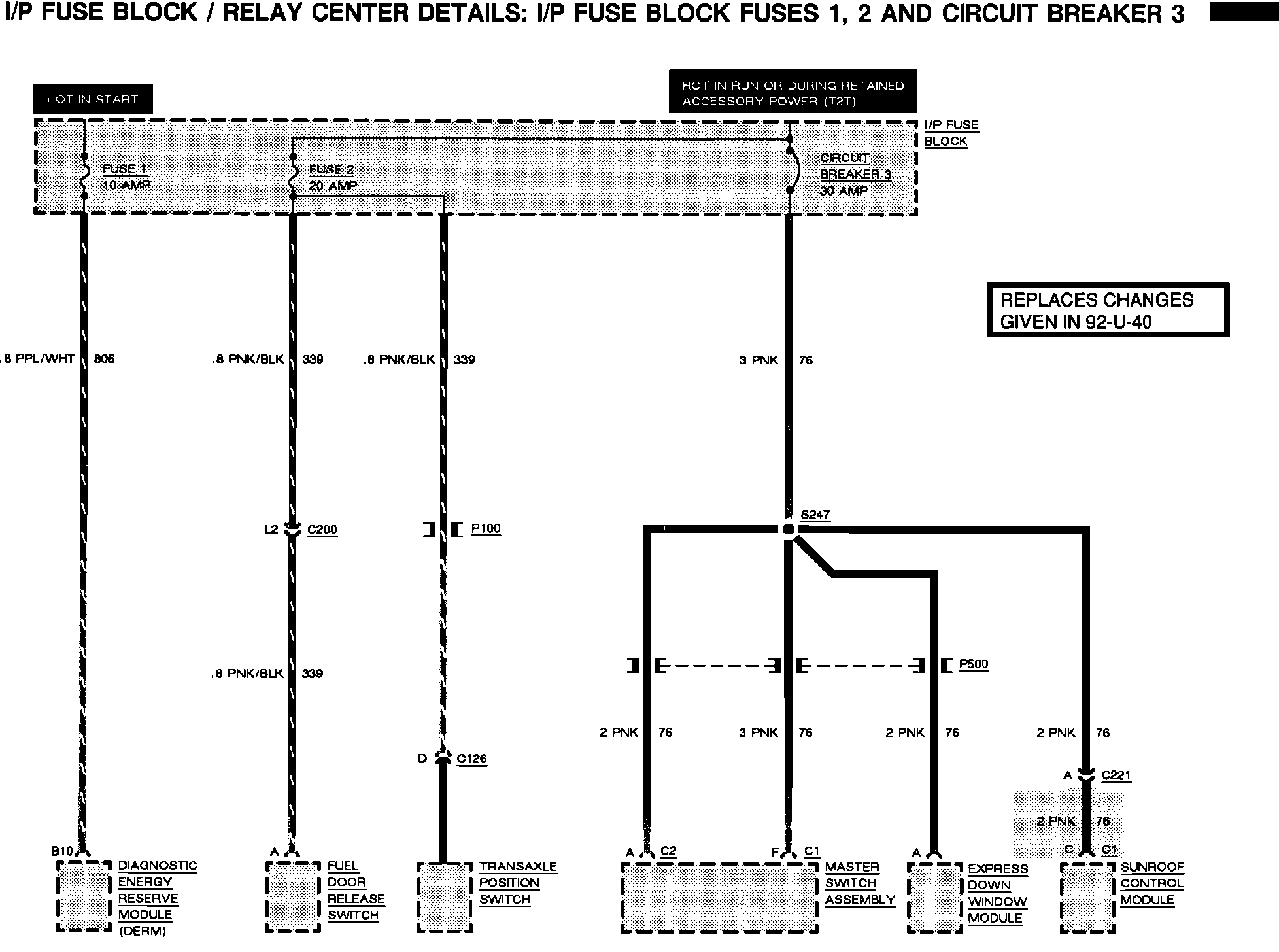 Ninety Eight I/P Fuse Block Fuses 1, 2, and Circuit Breaker 3