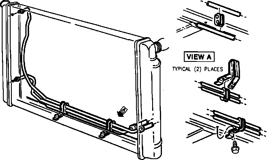 1. Raise the vehicle to gain access to the cooler pipe clips attached to the lower tie bar. See the illustration.