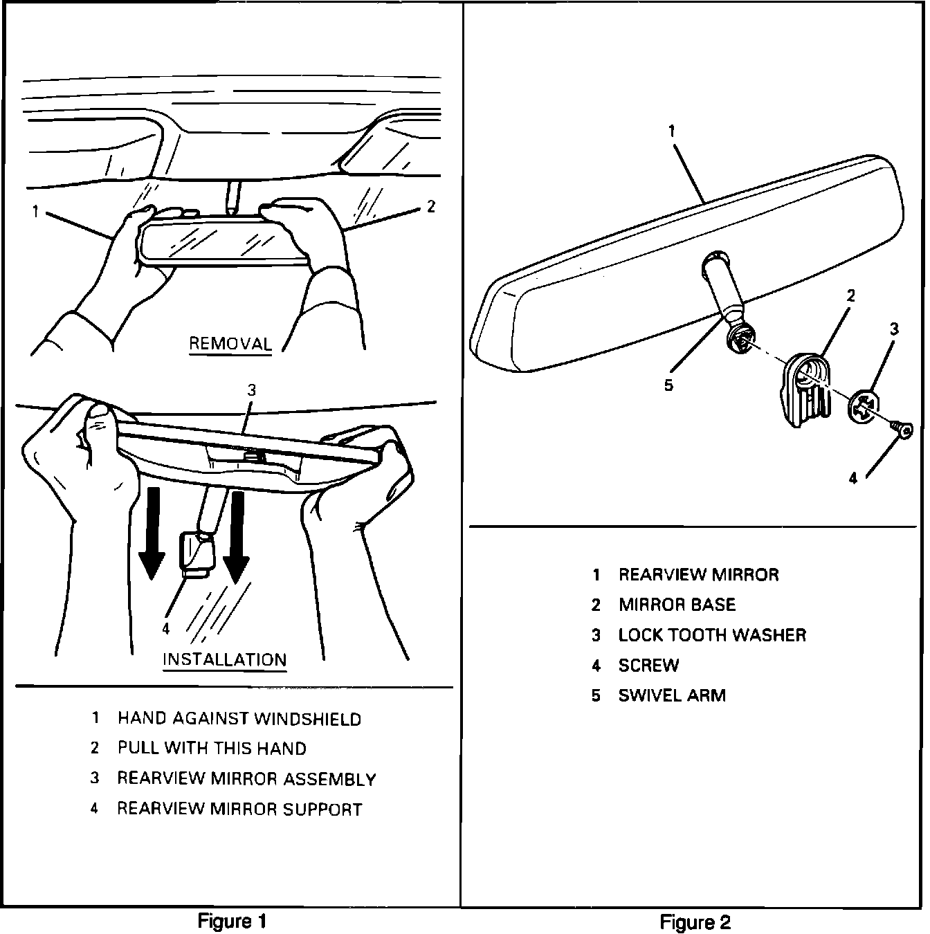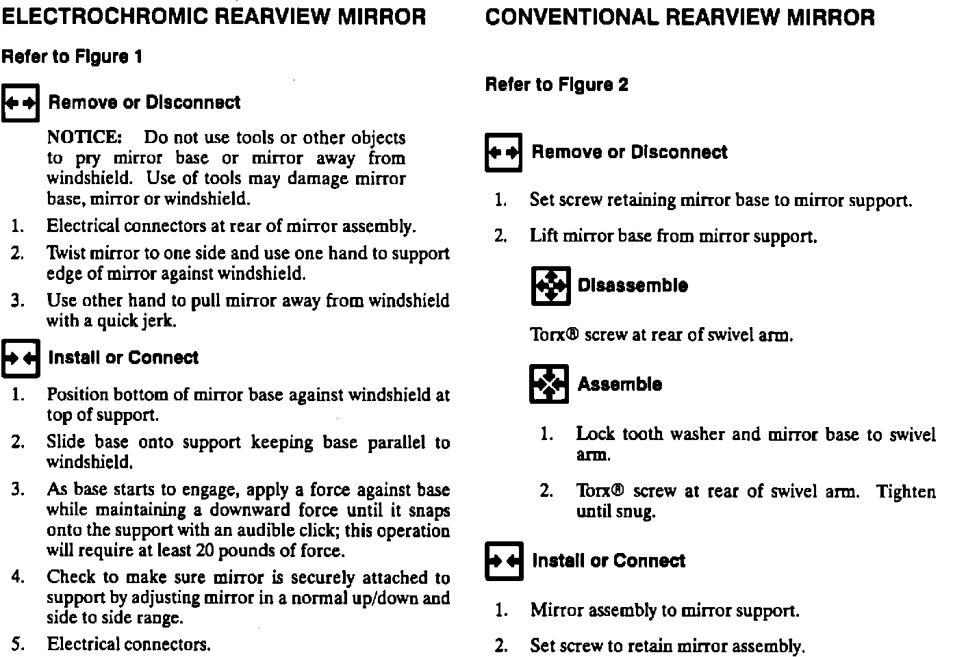 The Remove And Install Procedure for the Clip Mounted Rear View Mirror has been added to supplement the Service Manuals. Also included is the procedure for conventional rear view mirror replacement.