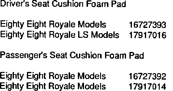 Some owners of 1992 Oldsmobile 88 models may feel that the front seat cushion is too soft or they sit too low due to the density of the foam pad in the cushion.