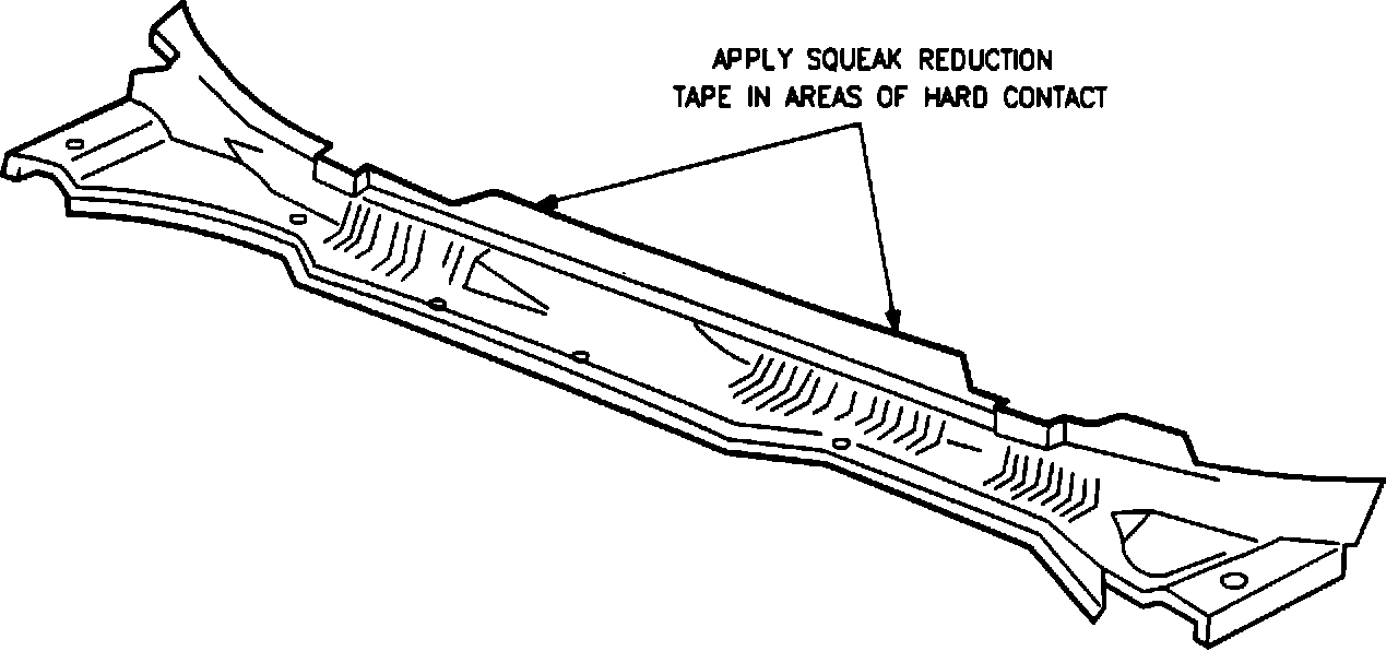 To correct this condition, remove the cowl screen and install 3M 5430 Squeak Reduction Tape (3M P/N 06356) or equivalent in the area shown in the illustration.