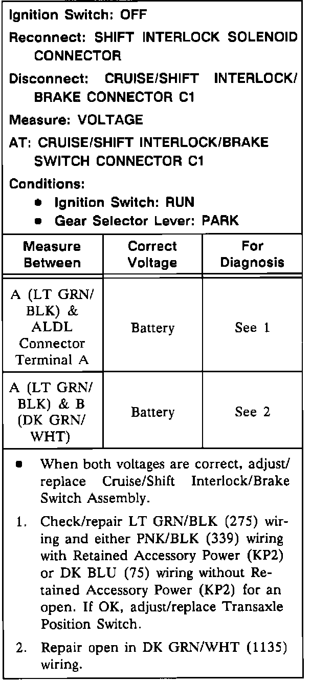 Shift Interlock Test (Table 2):