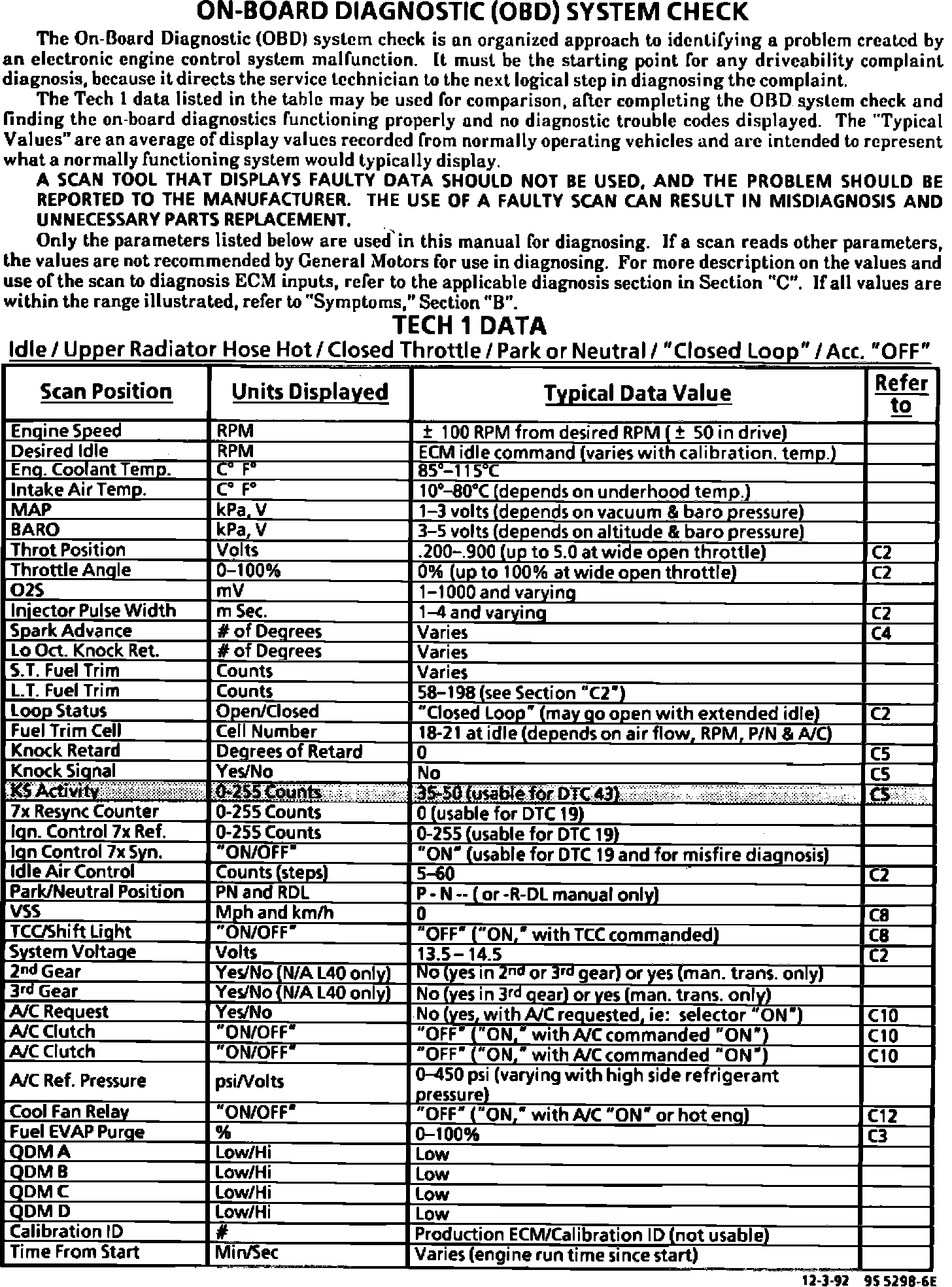 6E3- A-9 On-board Diagnostic (OBD) System Check, Tech 1 Data