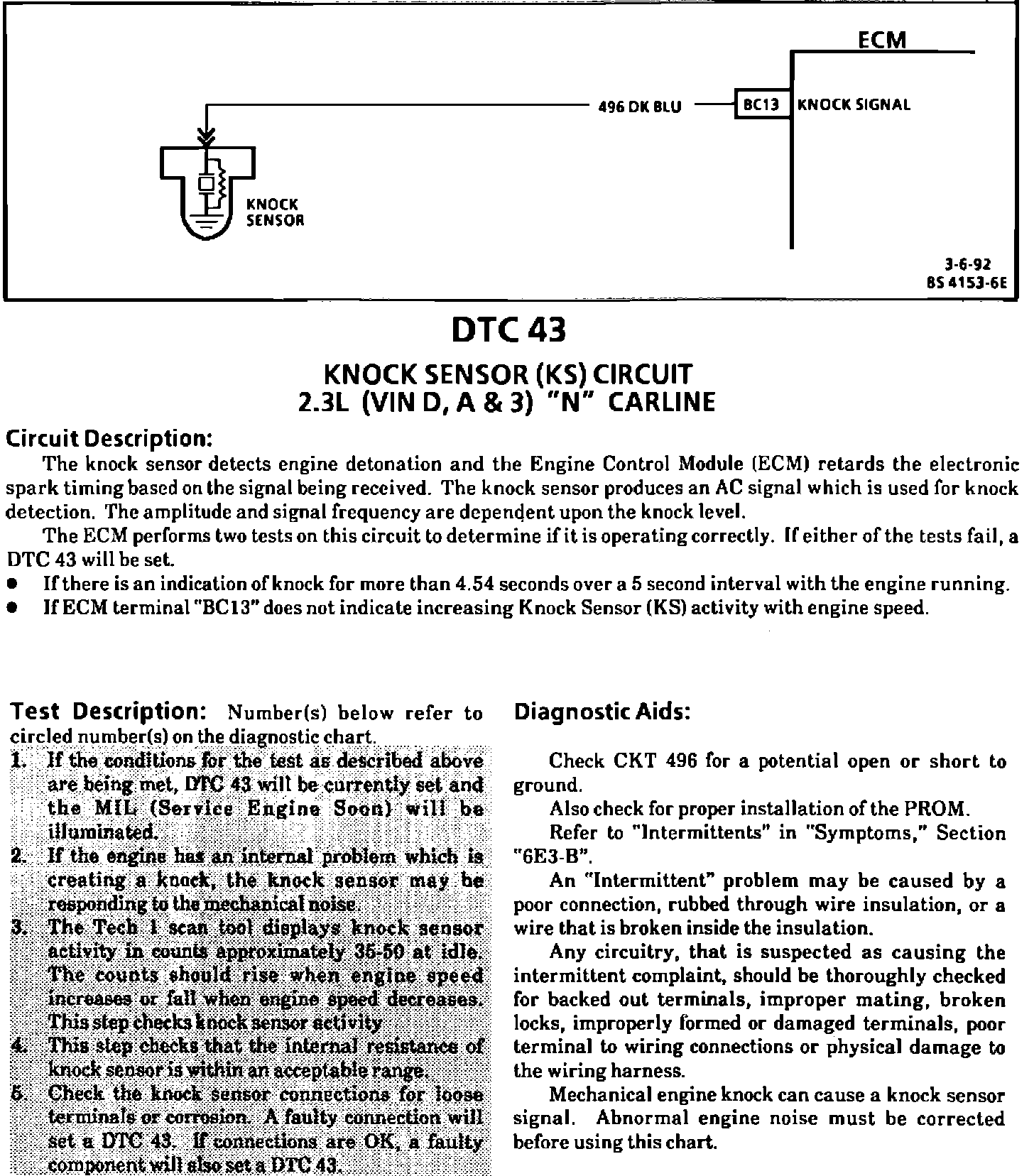 6E3- A-66 DTC 43 Knock Sensor (KS) Circuit Facing Page