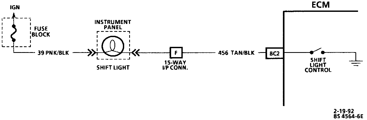 The shift light indicates the best transaxle shift point for maximum fuel economy. The light is controlled by the Engine Control Module (ECM) and is turned "ON" by grounding CKT 456.
