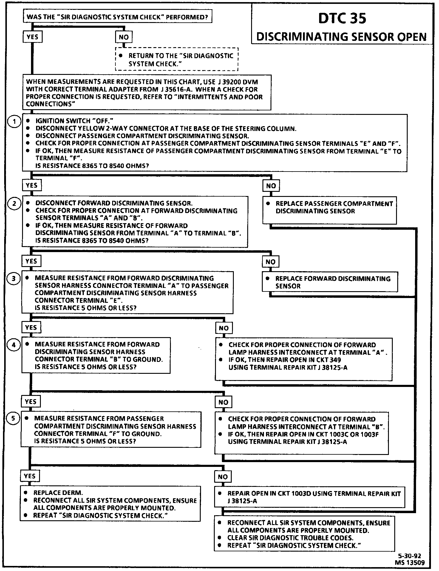 5. This test determines whether the malfunction is an open in the passenger compartment discriminating sensor ground circuit or a malfunctioning DERM.