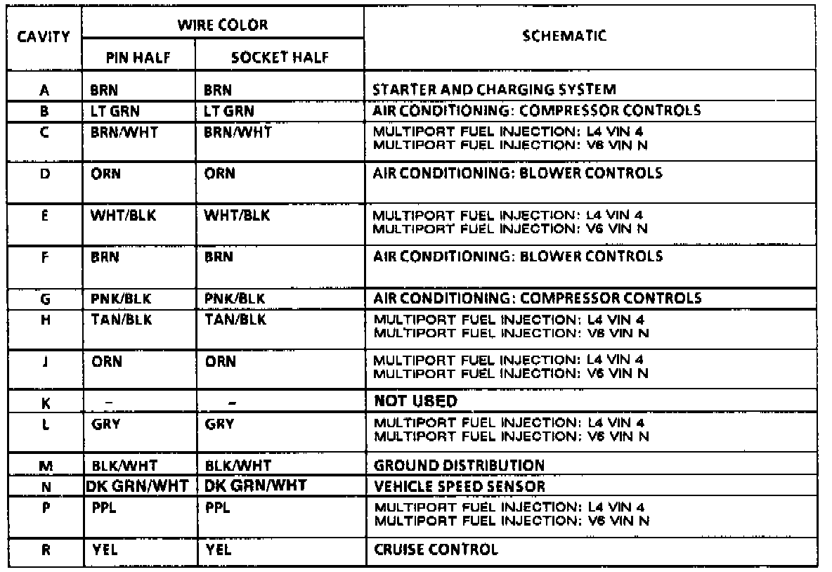 Harness Connector Faces: