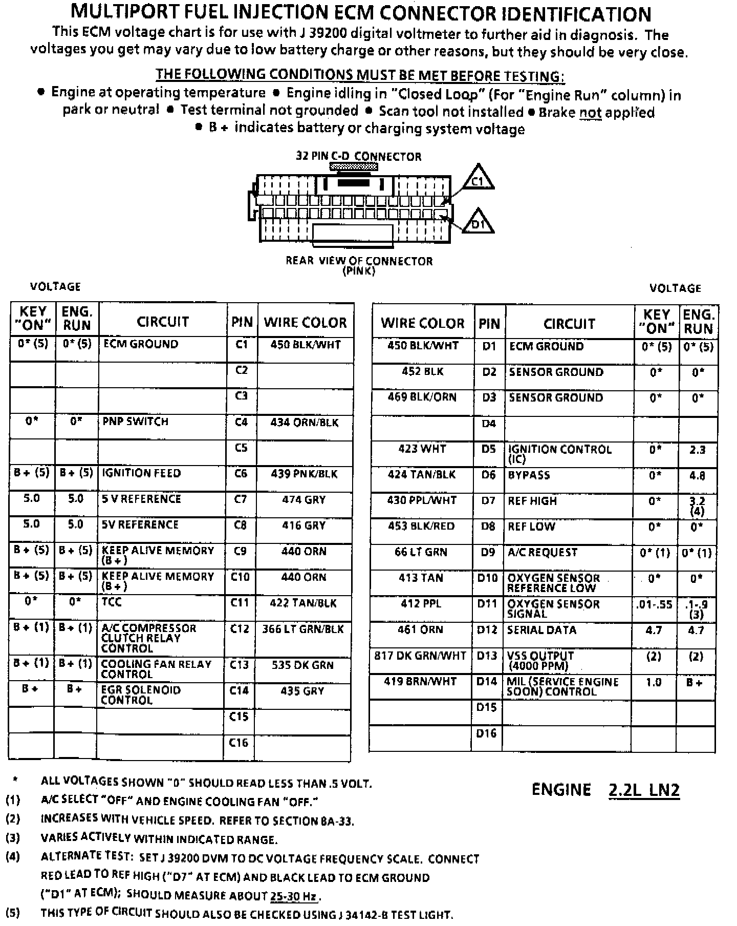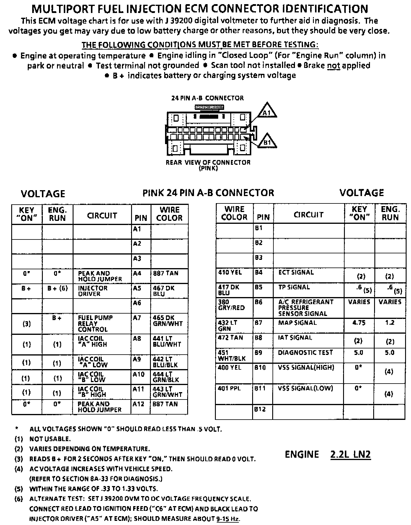 ECM Connector Pin Voltage Chart: