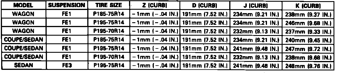 Fig. 11 Ride Height Specifications. 1991-92 Cutlass Ciera & Cruiser: