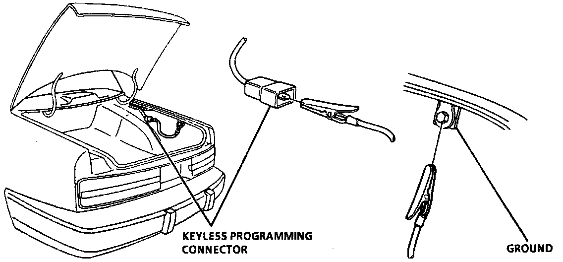 1. Jumper the Keyless Programming Connector to ground (all power door locks will lock and unlock).