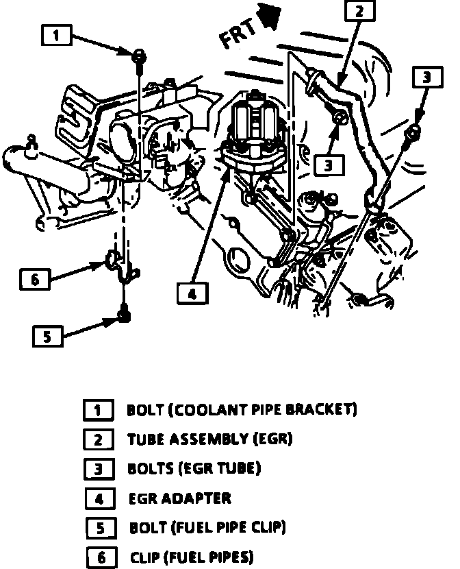 1. The EGR valve attaching bolts, EGR valve and EGR valve adapter.