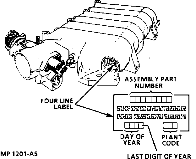 NOTE: An eight digit part identification number is printed on a mylar label affixed to the plug on the plenum portion of the manifold. Refer to this number if servicing or replacement is required. Refer to the disassembled view for identification of parts during repair procedures.