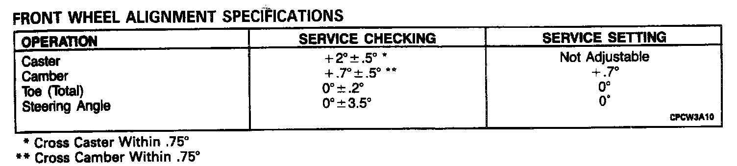 Front Alignment Specifications