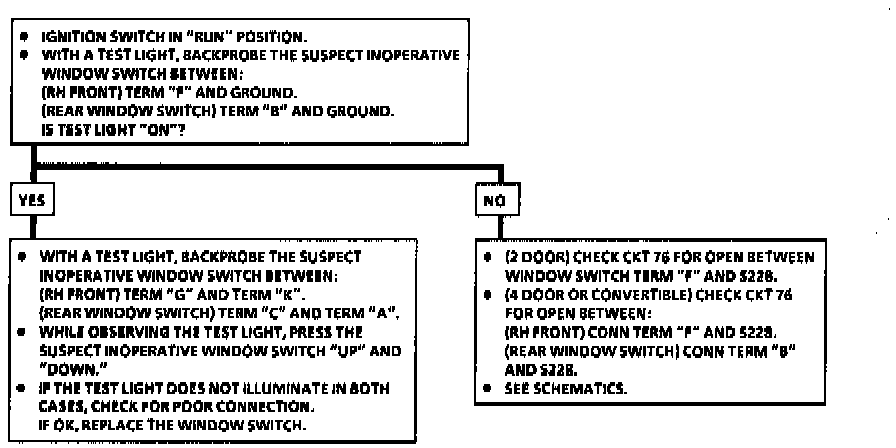 Chart 4 RF, RR, LR Window Is Inoperative From The Individual Window Switch, With Normal Operation From The Master Switch: