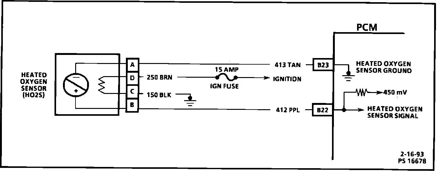 The oxygen sensor, installed in the exhaust manifold, monitors exhaust gas oxygen content and produce a voltage output. The PCM uses this voltage value to calculate the percentage of oxygen in the exhaust gas and adjusts the fuel injector pulse width to maintain the correct air/fuel ratio.