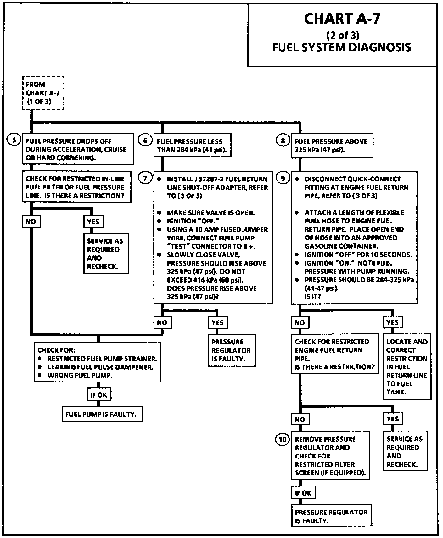 9. This test determines if the high fuel pressure is due to a restricted fuel return line or a faulty fuel pressure regulator.