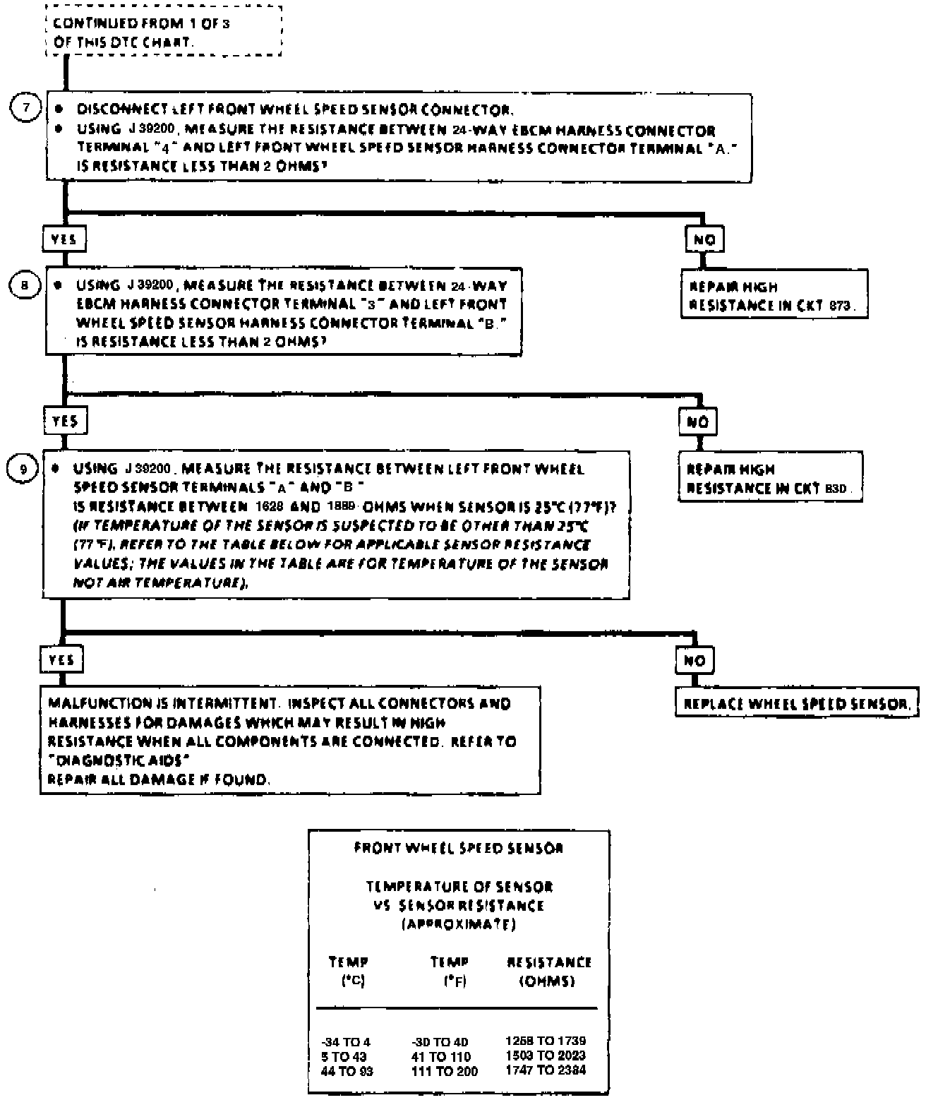 9. Checks for proper resistance of the wheel speed sensor.