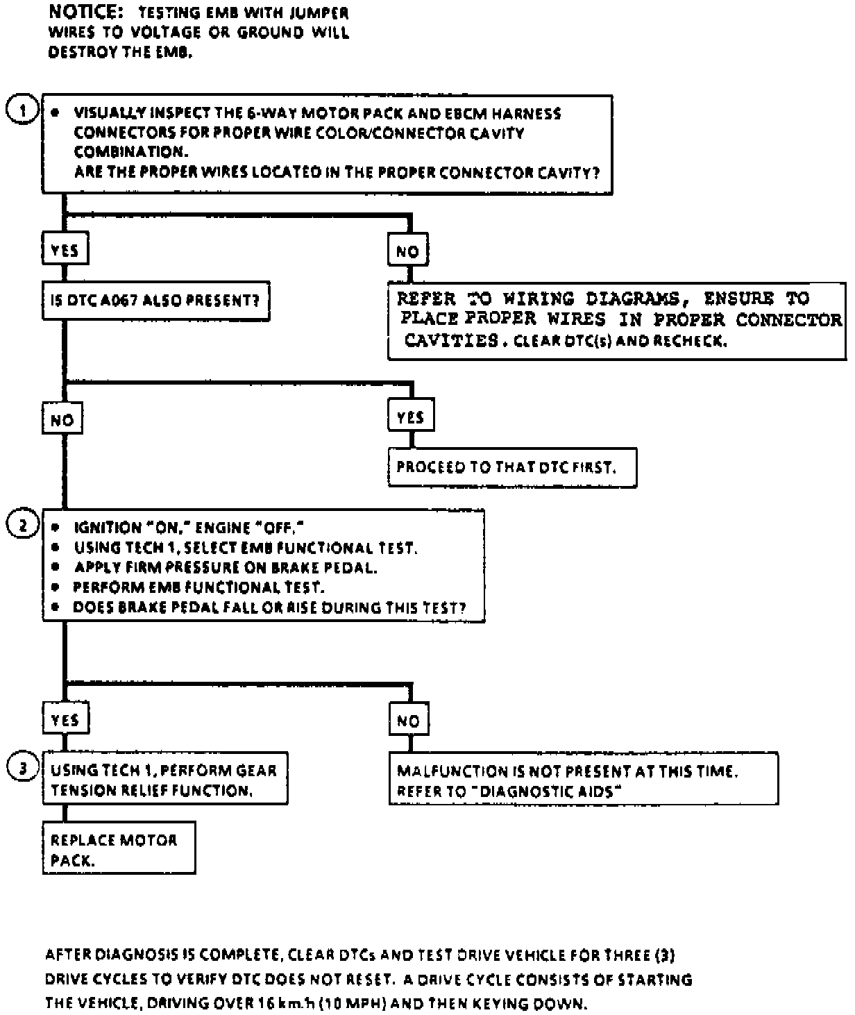 2. This functionally checks the ability of the EMB to hold the motor. If the brake pedal moves during this test, it would indicate the EMB is slipping.