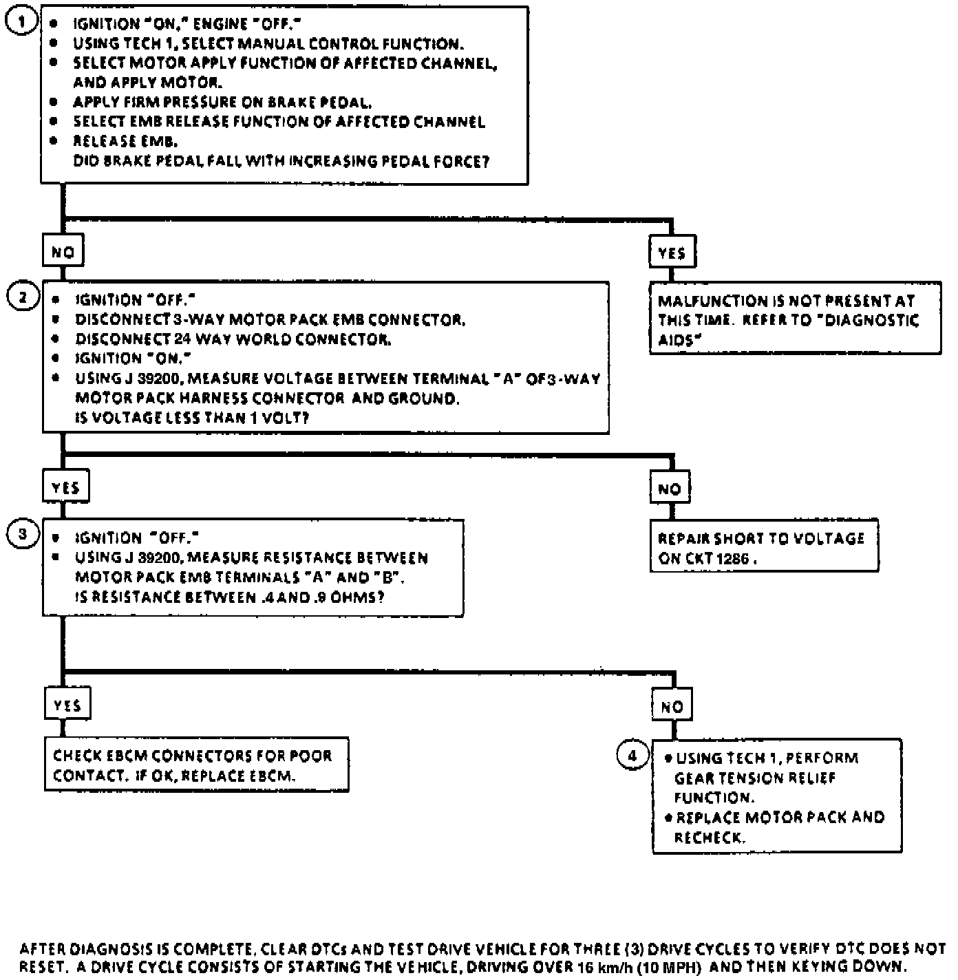 This DTC is designed to detect shorts to battery, shorts in the Electromechanical Brake (EMB) release circuit, or an open EMB driver. These malfunctions will not allow the EMB to be energized (released) when needed.