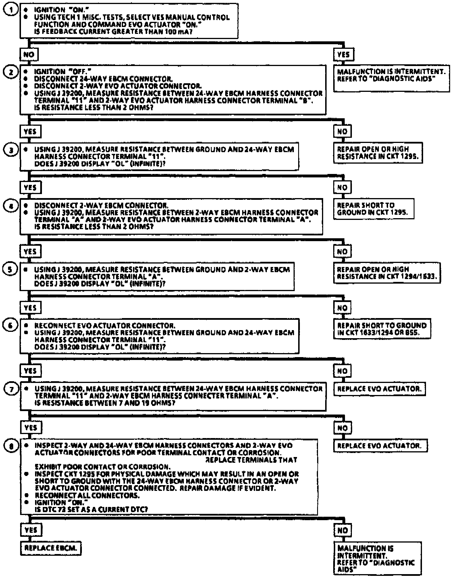 7. Checks for a open in the EVO actuator.