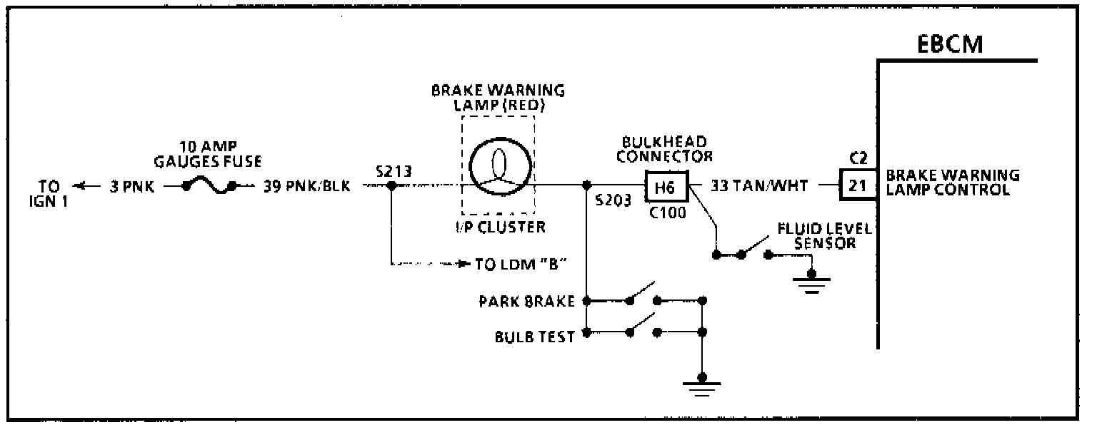 3. The brake warning lamp has current supplied to it through the 10 amp gauge fuse; therefore, this step would indicate if the ignition circuit is complete to the I/P cluster.