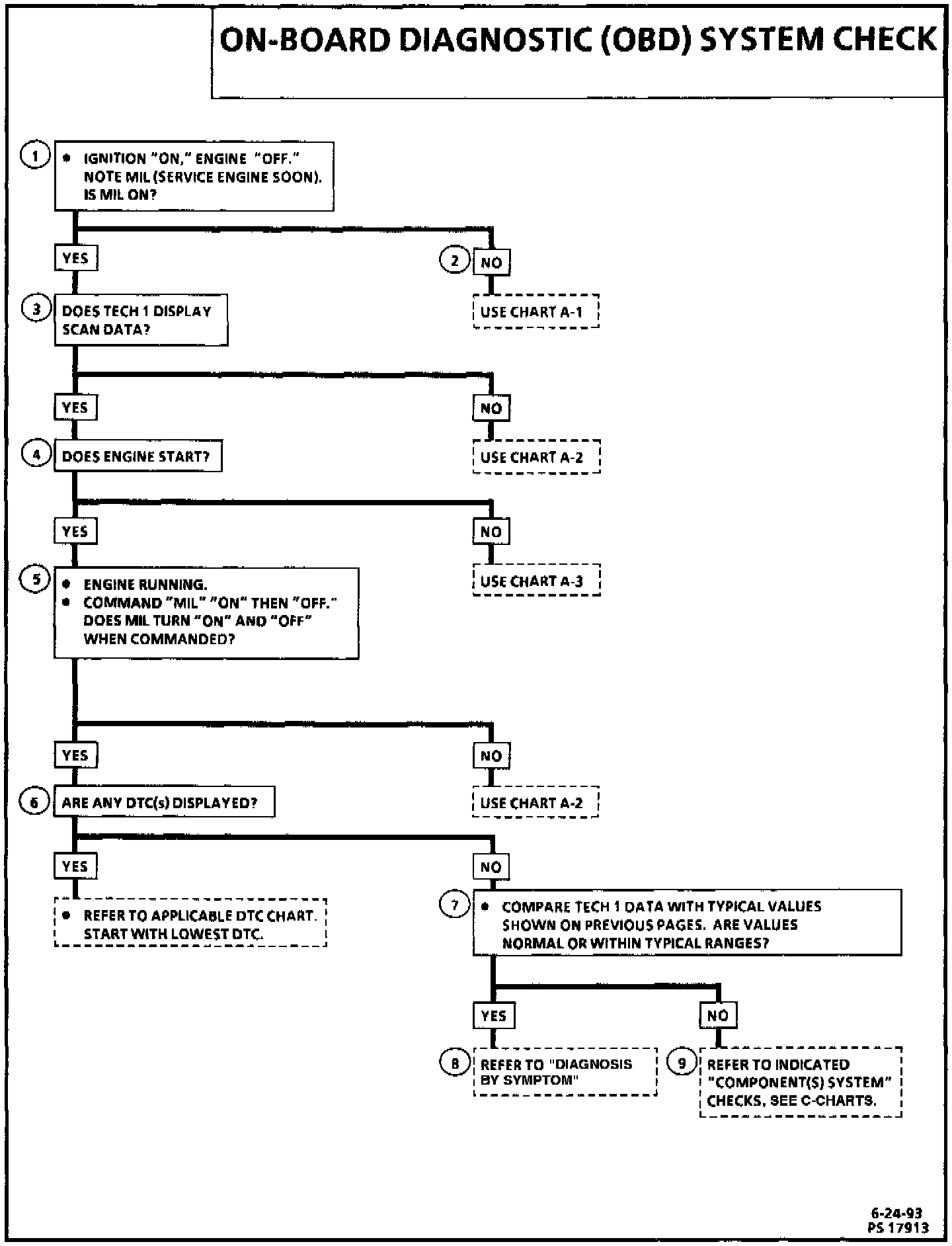 The On-Board Diagnostic (OBD) system check is an organized approach to identifying a problem created by an electronic engine control system malfunction. It must be the starting point for any driveability complaint diagnosis, because it directs the service technician to the next logical step in diagnosing the complaint. Understanding the chart and using it correctly will reduce diagnostic time and prevent the unnecessary replacement of good parts.