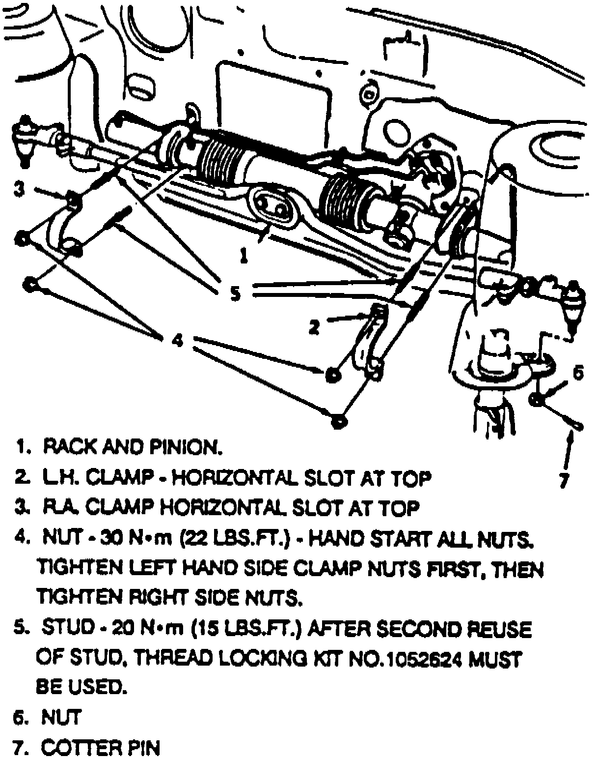 11. Reverse procedure to install. If steering gear mounting clamp studs have backed out during removal, reinstall studs to cowl and tighten until stud is fully seated. Torque should not exceed 15 ft. lbs. After second reuse of studs, thread locking kit No. 1052624 must be used.
