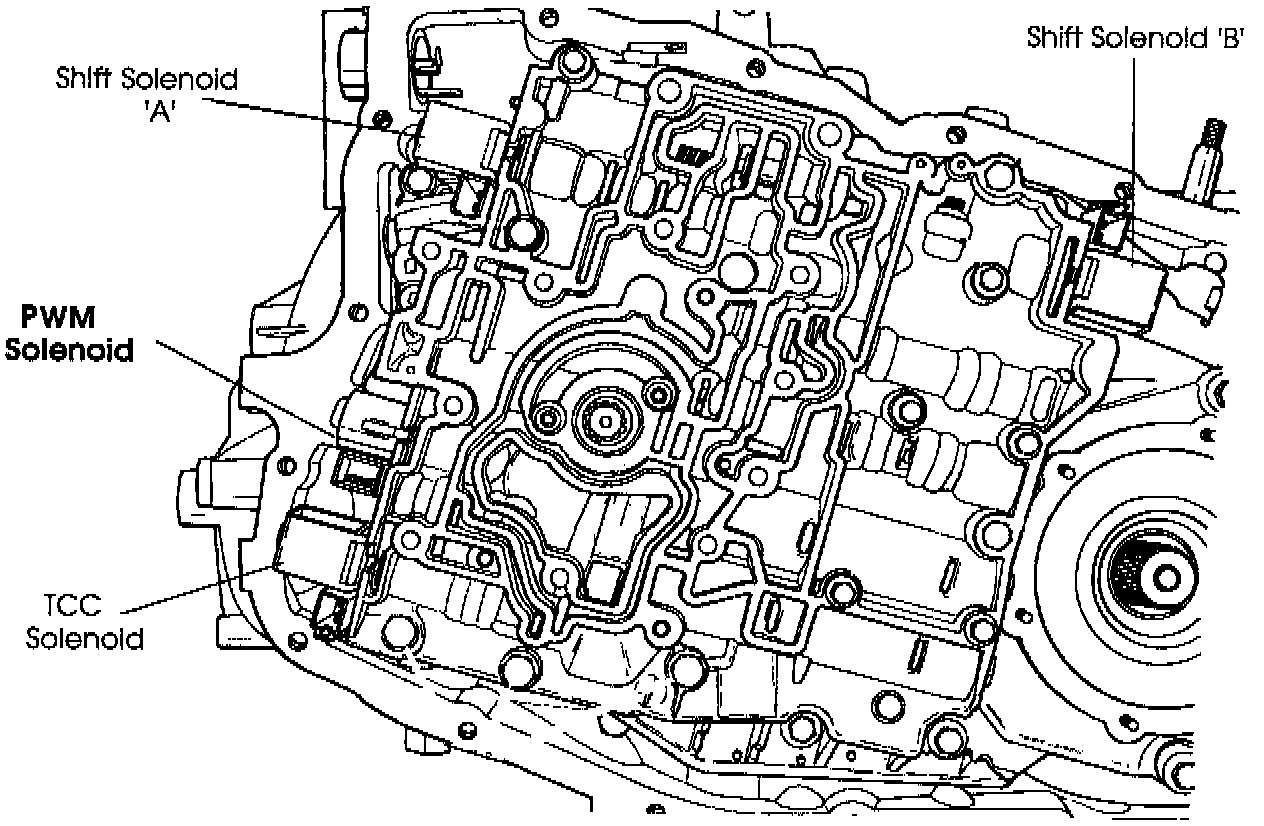 1994 and 1995 4T60-E units were upgraded to a redesigned TCC PWM solenoid assembly (P/N 8683535). The PCM controls the duty cycle command to change lockup pressure. As always, the 4T60-E PWM solenoid remains negative duty cycle controlled (the PCM controls the ground side of the solenoid circuit). In addition, models which previously did not use PWM controlled TCC were upgraded to PWM control for 1995.