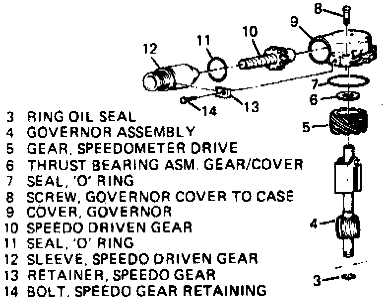 4. Remove speedometer driven gear and sleeve assembly or speed sensor if equipped.