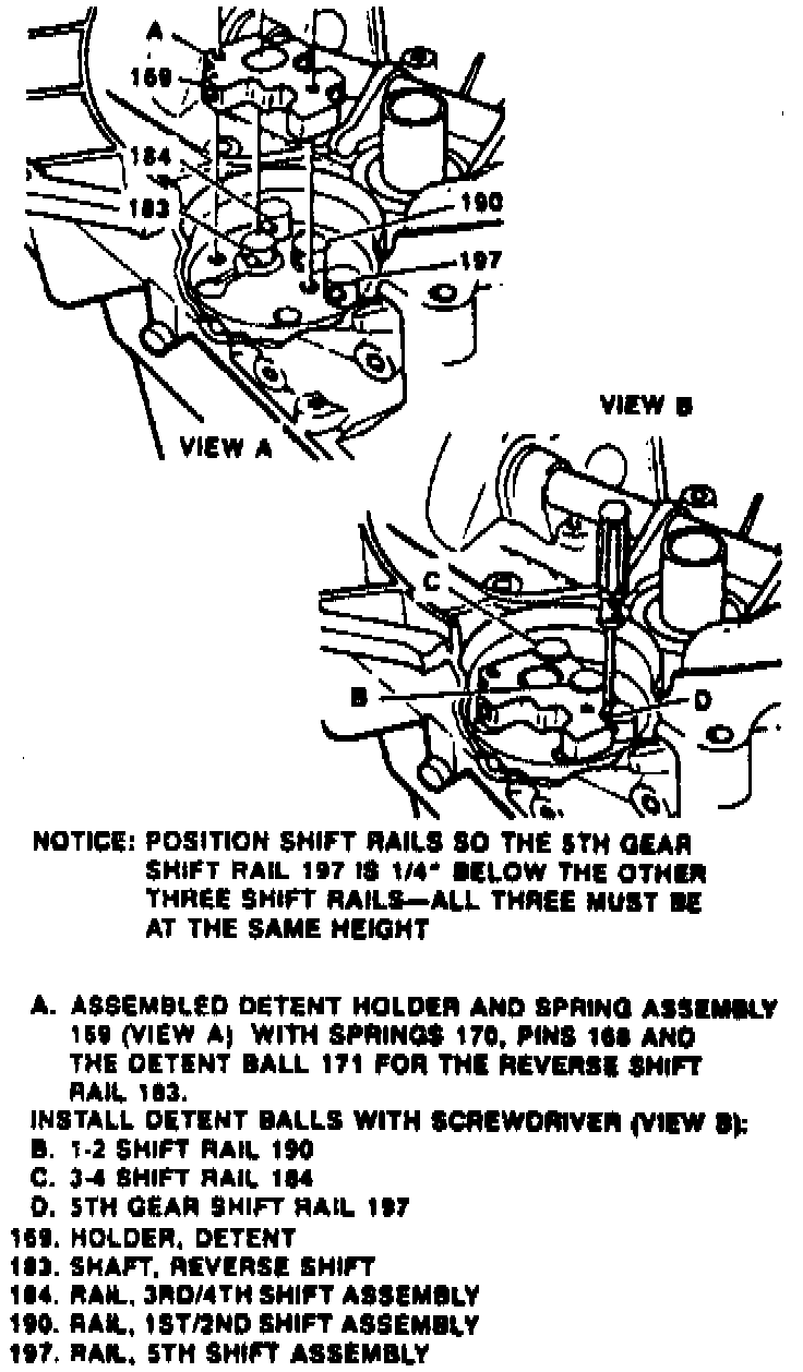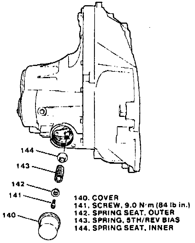 1. Install inner spring seat (144), then the fifth/reverse bias spring (143).