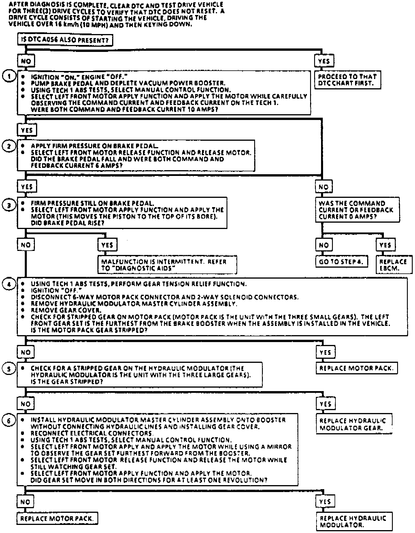 1. This step compares feedback current to command current during apply If either is 0 amps, the Electronic Brake Control Module (EBCM) is not functioning properly.