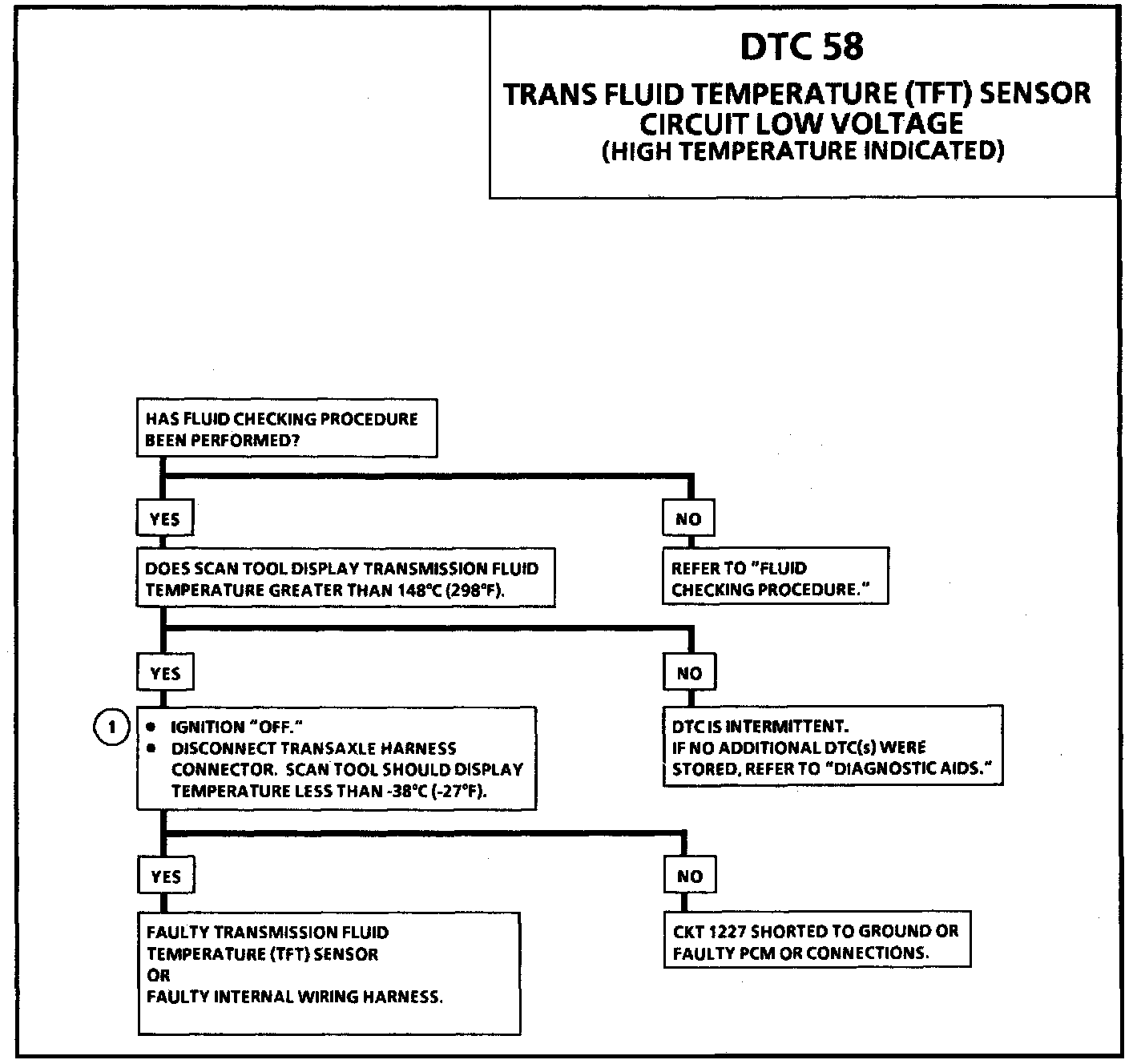 1. This test checks if CKT 1227 is shorted to ground which will cause the conditions for DTC 58.