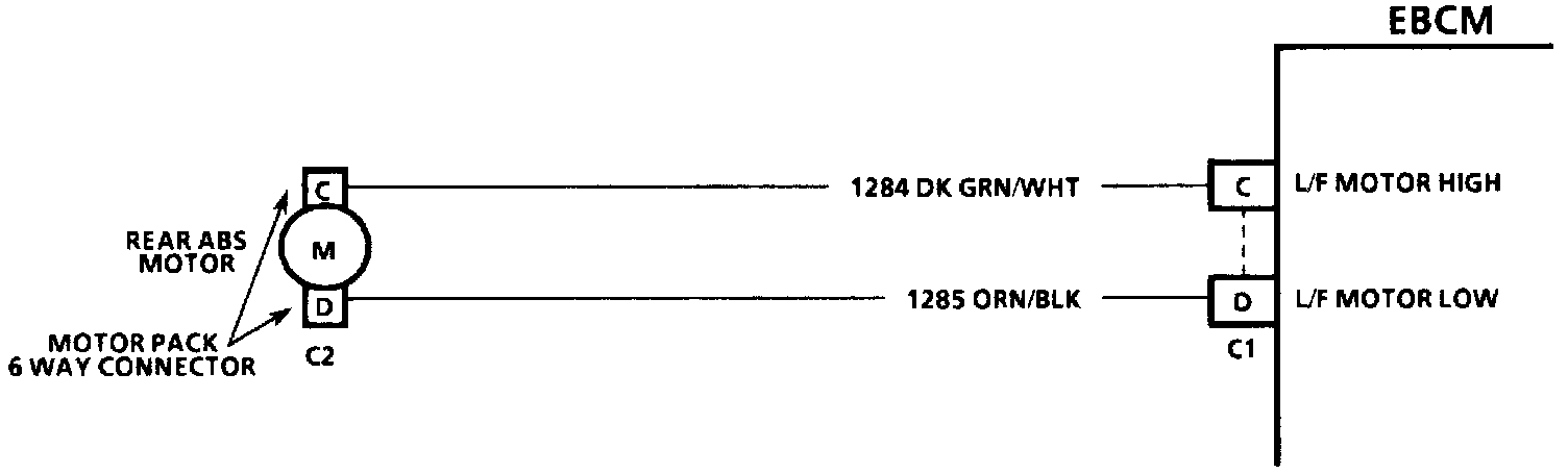This DTC identifies a motor that cannot be energized due to an open in its circuitry. This malfunction will not allow proper rear Antilock Braking System (ABS) operation.