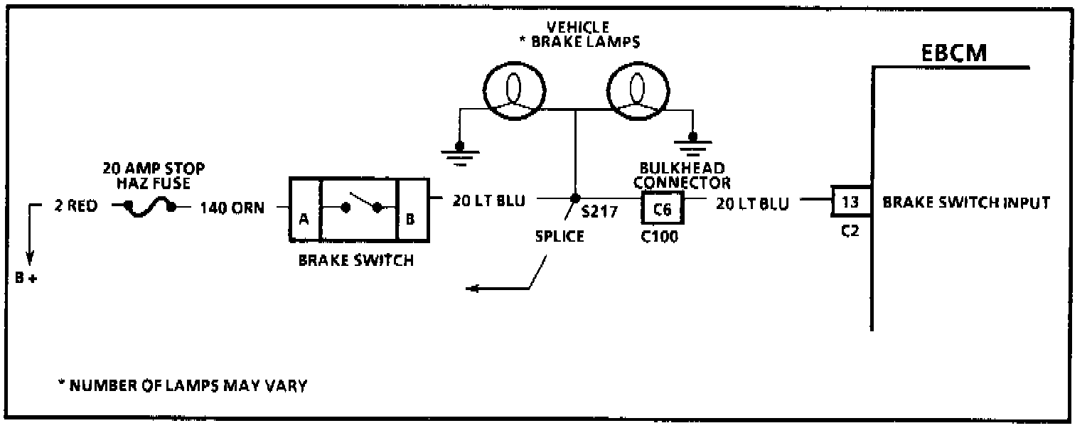 2. This step indicates if an open circuit exists in the brake switch or brake lamp circuitry.