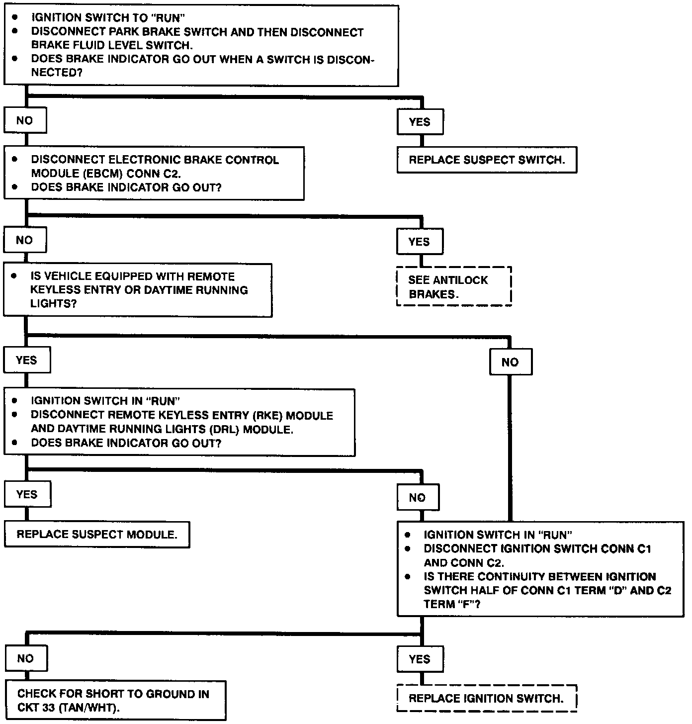 Chart 1: Brake Indicator Remains On With Ignition Switch In "Run" And Park Brake Released: