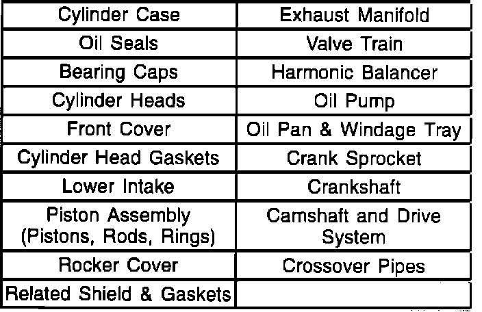 Any deficient engine component on the list should be repaired according to service procedures in the applicable vehicle service manual.