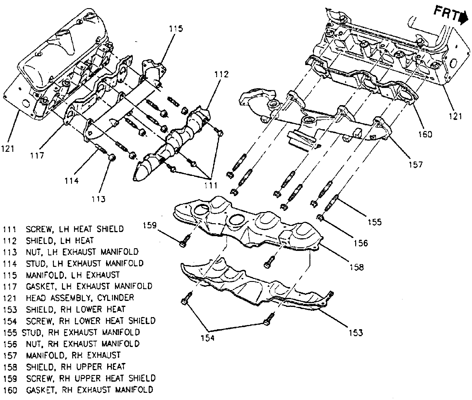 10. Reverse procedure to install. Tighten exhaust manifold and heat shield to specifications.