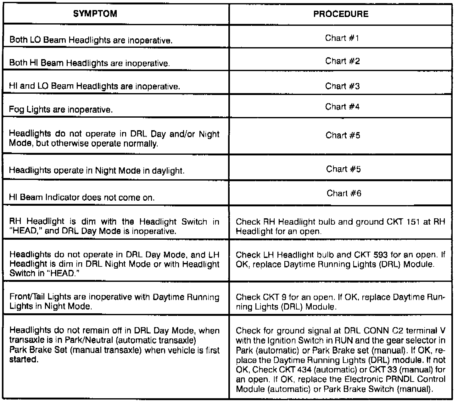 Symptom Table