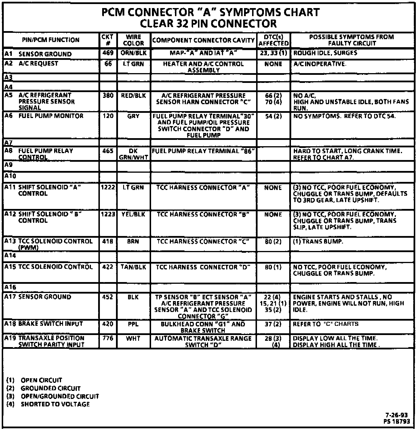 PCM Connector Symptoms Chart Part 2 Of 6: