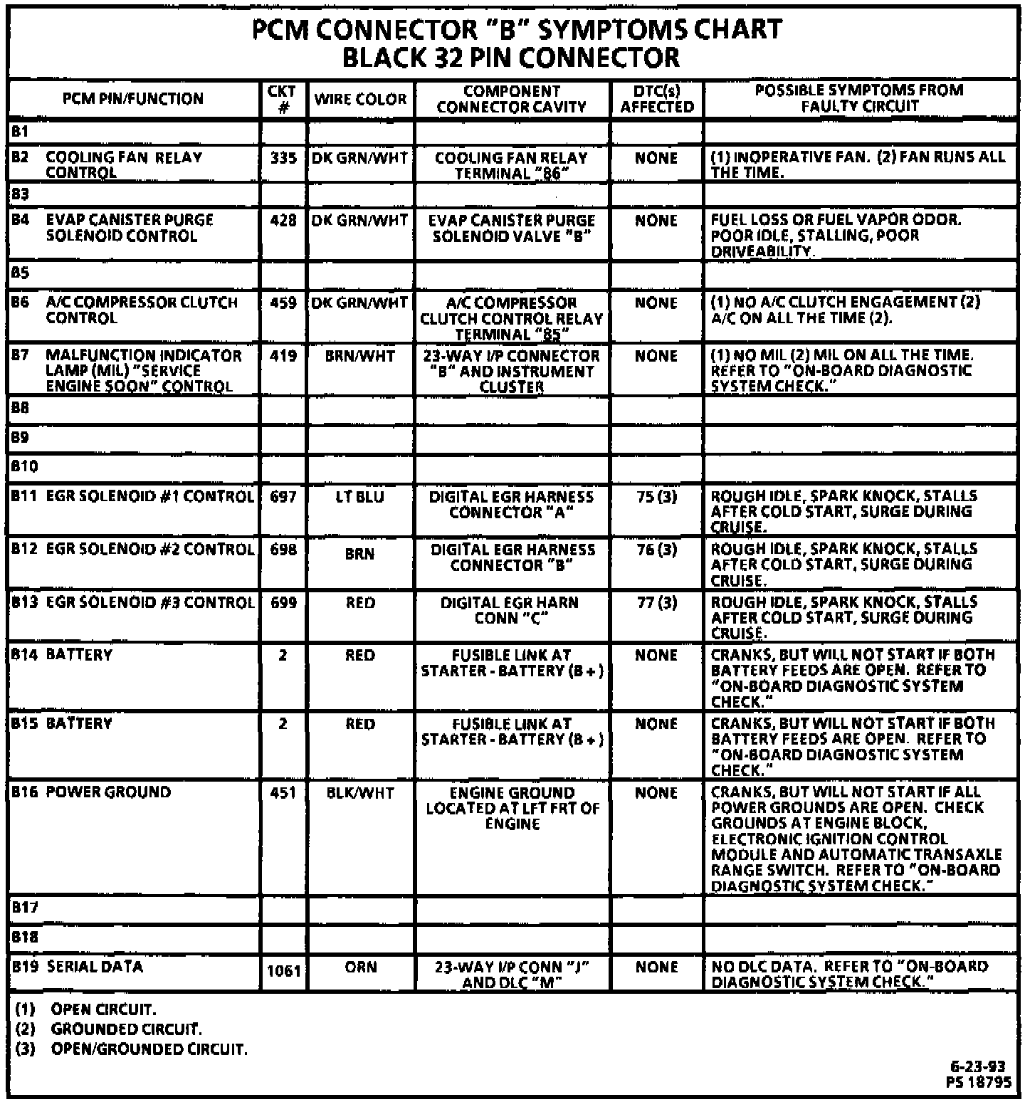 PCM Connector Symptoms Chart Part 3 Of 6: