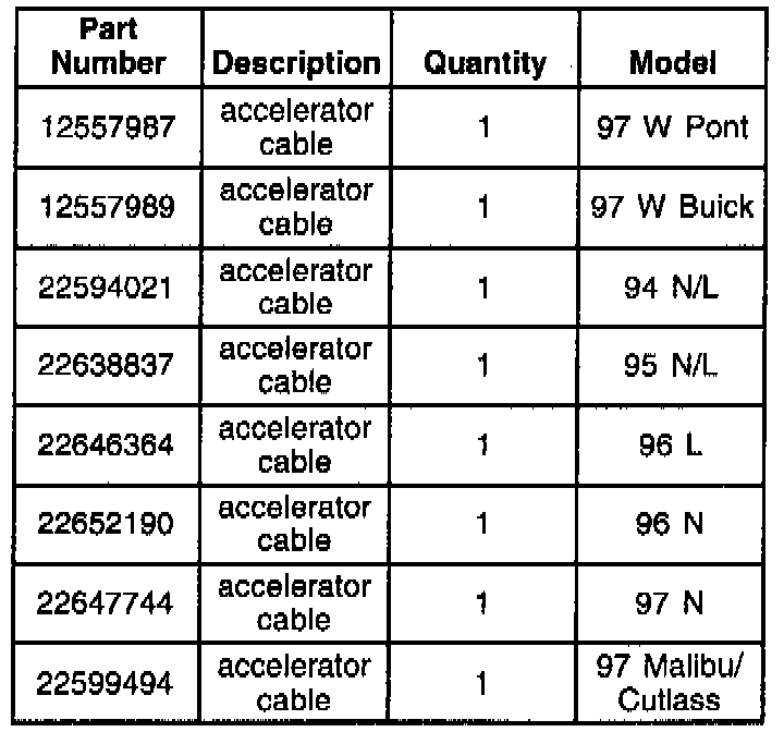 The accelerator cable comes out of the throttle cam groove on the throttle body. This happens when slack is allowed to accumulate in the cable and a loop is formed while the throttle is opened. When the throttle is relaxed, the loop of cable may not return to the groove in the throttle cam but comes to rest along the side of the cam. A typical scenario can be either lifting up on the accelerator pedal while the cruise control is engaged and then disengaging the cruise control or if the floor mat is allowed to bunch up under the accelerator pedal. The cable will return to the cam groove if the throttle is depressed to near wide open throttle. The cable may become worn or broken if. it is allowed to wear against the throttle cam. If the cable breaks, the throttle will return to idle.